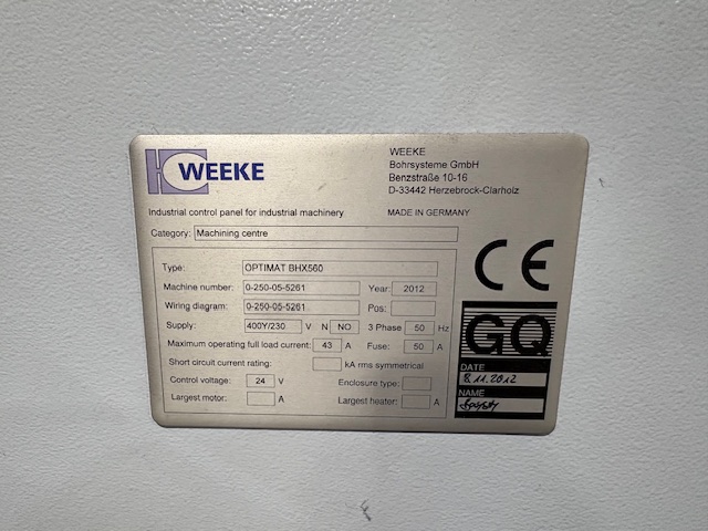 X01665 – CENTRE D’USINAGE HORIZONTALE WEEKE HOMAG TYPE OPTIMAT BHX560