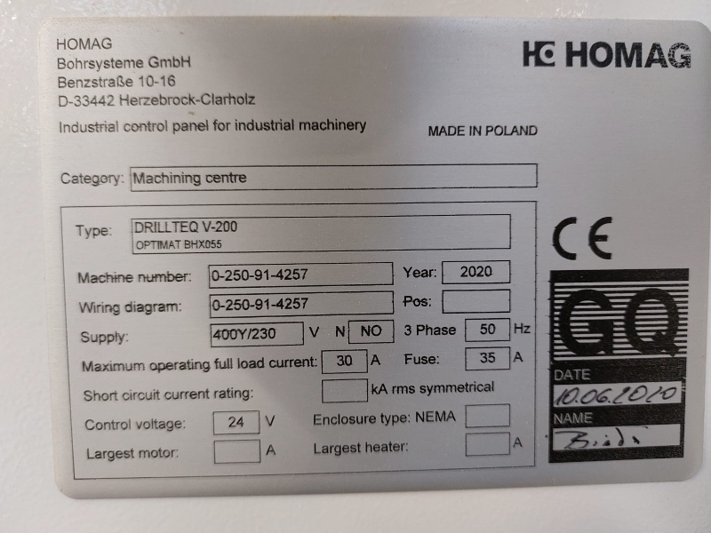 X01761 – CENTRE D’USINAGE HOMAG A CN DRILLTEQ V200 OPTIMAT BHX055