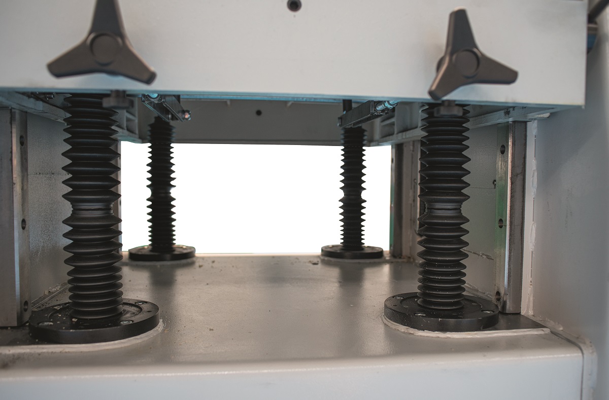 • Table d’usinage en fonte nervurée avec déplacement vertical motorisé par glissement grâce à 4 colonnes filetées en acier