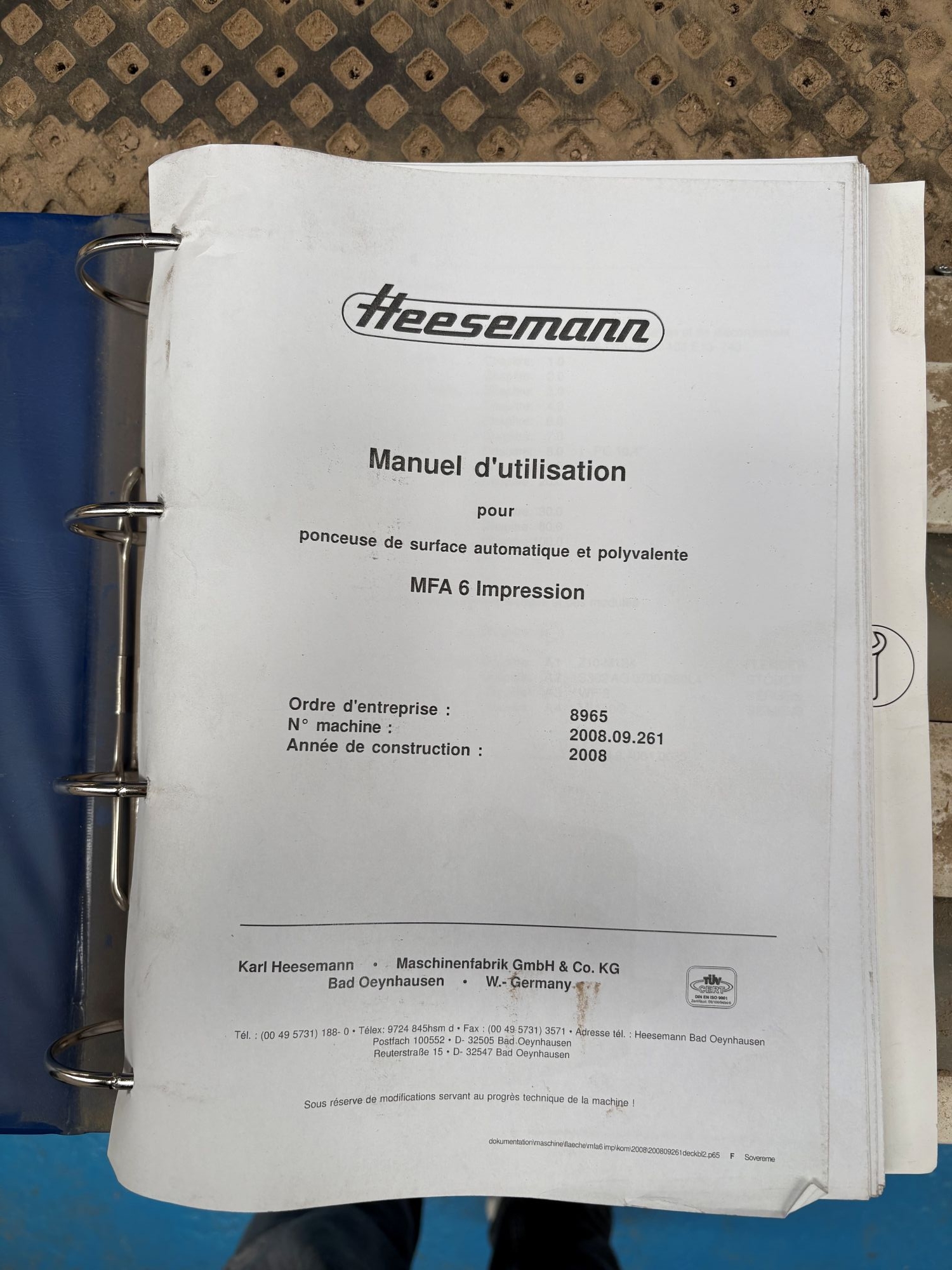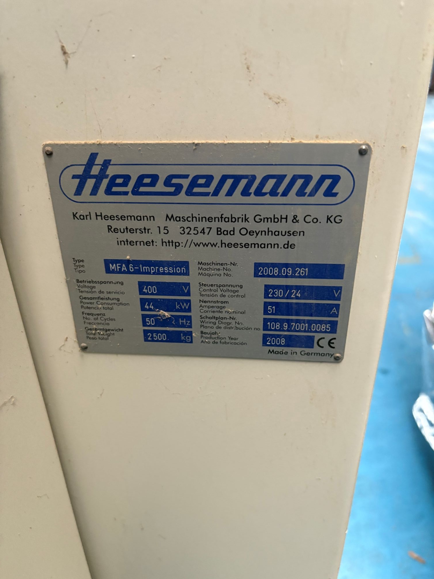 X01831 – PONCEUSE EGRENEUSE LARGE BANDE HEESEMANN TYPE MFA 6 IMPRESSION